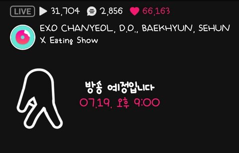 7월 19일 오후 9:00 찬열 디오 백현 세훈 먹방