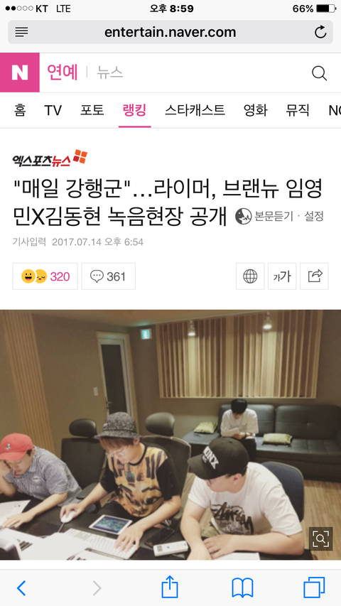 "매일 강행군"…라이머, 브랜뉴 임영민X김동현 녹음현장 공개 본문듣기 설정== http://naver.me/GLphI6fM