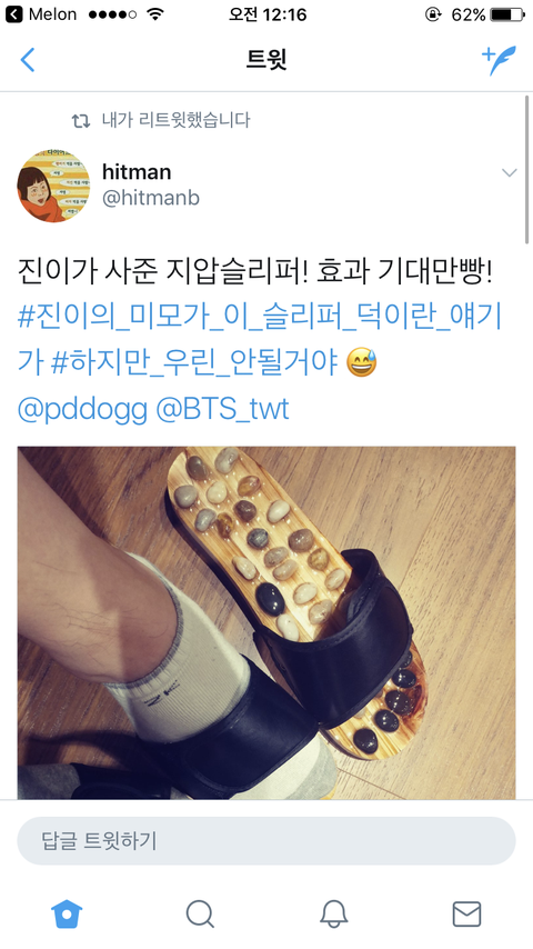 근데 해시태그 왤케 슬프죠 토토찡?ㅠ 나도 지압슬리퍼 하나 사야겠어 진이처럼 이쁜 외모를 가질라면