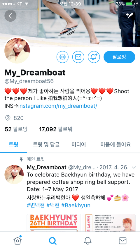 뭐내가연예인이라도그럴거같긴한데 ㅋㅋㅋㅋ 어제백현이 인별에 올라온 사진 이홈마가찍은건데 많이봤기도해서 되게 유명한홈마일줄 알았는데 생각보다 팔뤄수 적어서..ㅇㅇ