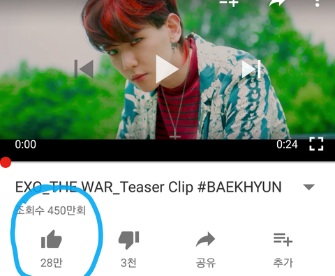 이상하게 백현 티저만 좋아요수는 그대로인데 조회수만 이상추이로 계속 올라감.
