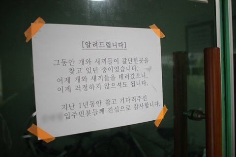 * 구조직후 , 빌라출입구에 붙여둔 안내문입니다. 그리고 큰멍멍이 임시보호견사로 보내고 떼었습니다.