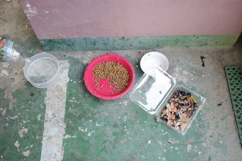 김밥드신 날엔 김밥을 가져다 주시는 등 , 사료가 아닌 음식물들은 저희가 아닌 다른분들이 챙겨주셨어요~