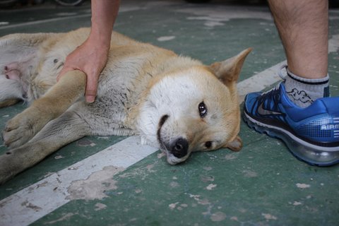 새끼들 때문에 예민해진 큰멍멍이라서 , 임시보호견사로 이동하기 전에 구조해서 동물병원에