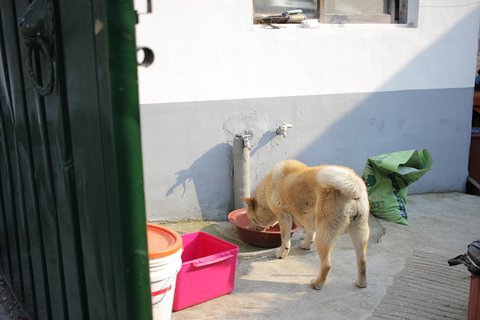물을 어디에서 먹는지 몰랐는데 , 이런식으로 동네에 물이 보이는 곳에서 물을 마시는거 같더라구요~ 개집을 렌탈해주신 어르신 댁인데요~ 처음엔 짖는다고 싫어하시다가도 간식도 챙겨주시고,