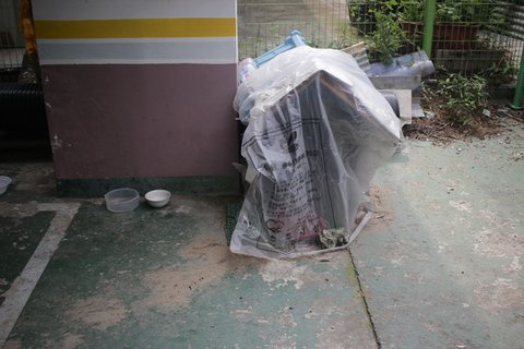 그 공간은 세입자 분의 개인장비들이 널부러져 있는데 , 이로 인해 주민들사이에 갈등이 있는걸로 알고 있습니다. 방치된 쓰레기는 쓰레기 봉투를 구입해서 전부 정리해드렸구요~