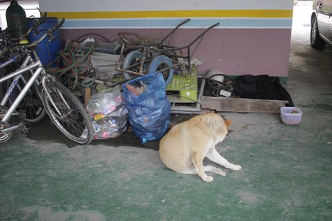 또 저희가 큰멍멍이에게 터를 잡아준 것이 아니라 , 원래 머물런 빌라가 있고, 그 빌라에서 지금빌라로 터를 잡은것은 큰멍멍이 였습니다. 어떤날은 일주일씩, 열흘씩 안보이면 , 그래 죽었구나 , 그래 도망갔구나 , 그래 잡혀갔구나 싶다가도 어느새 빌라주차장에 나타나기를 수십번을 반복했고 , 저희 부부는 사료나 물만 챙겨줬다면, 빌라주민들 , 동네어른들이 사료가 아닌 먹을것 들을 수시로 챙겨주곤 하셨습니다. 빌라입주민들 대부분도 큰멍멍이 끼니를 챙겨주셨습니다.