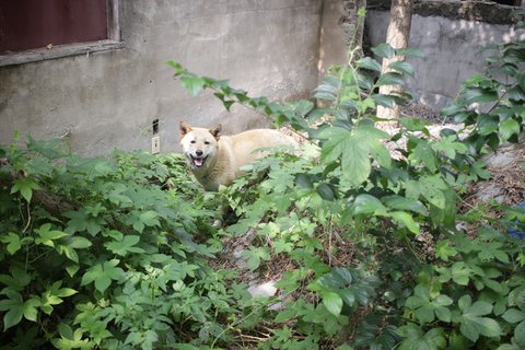 마실나갔나 싶은데 , 인기척을 느끼고 뒤쪽 풀숲에서 큰멍멍이가 나오더라구요~