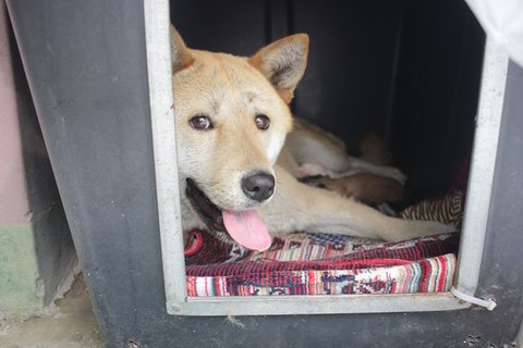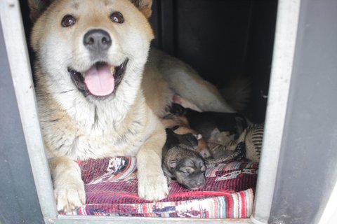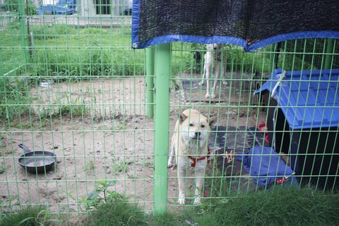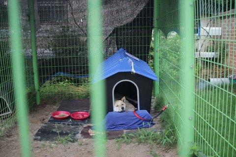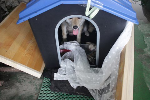 현재 큰멍멍이는 개인소유의 견사에서 새끼들과 임시보호 받고 있습니다.