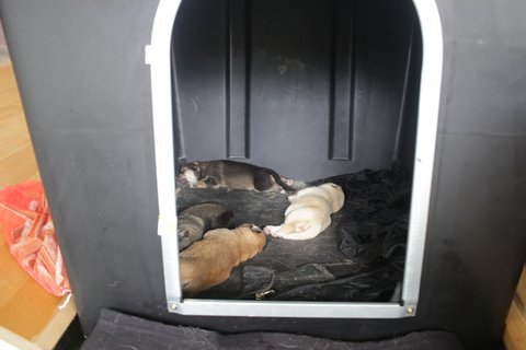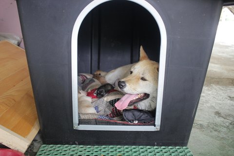 큰멍멍이와 새끼들이 함께 사용하기엔 많이 비좁은 집이라서 ,
