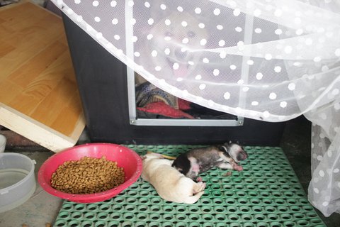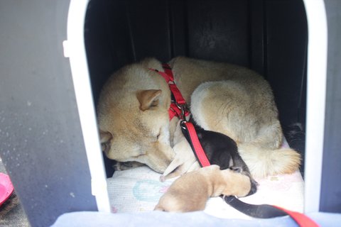 구조가 되어 큰멍멍이가 동물병원 견사로 이동했을 시기에 , 큰멍멍이와 새끼들 모두 데려가고 싶어하시는 분이 계셨습니다. 하지만 너무 성급한 결정이셨던지 이내 마음을 바꾸셨습니다.