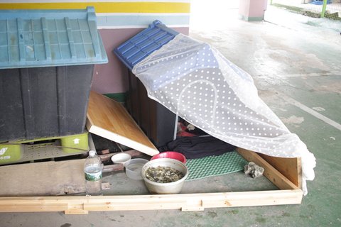 '주인을 찾아주려고 노력하고 있는데 쉽지가 않다. 당장 출산을 해야하기 때문에 조금만 더 부탁을 드린다' 라고 허락을 맡고 , 나름대로 산실을 만들어줬어요!!!