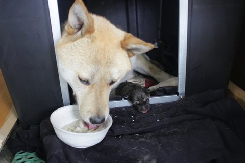 큰멍멍이 혼자 누워있기에도 비좁은 곳에서 큰멍멍이는 거친숨을 몰아쉬며, 그 새벽 출산을 했습니다.