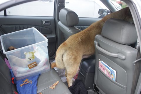 큰멍멍이를 차에 태웠는데, 원래 계획대로라면 목줄을 채운다음에 입마개를 해서 이동시켰어야 했는데 , 상황이 너무 급하다보니 목줄도 없이 입마개도 없이 바로 이동하게 되었습니다.