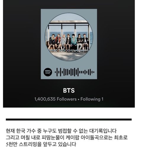 방탄소년단, 스포티파이 팔로워 140만 돌파