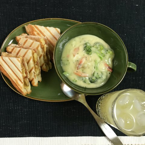 바나나랑 땅콩버터 들어간 샌드위치 그리고 새우스프