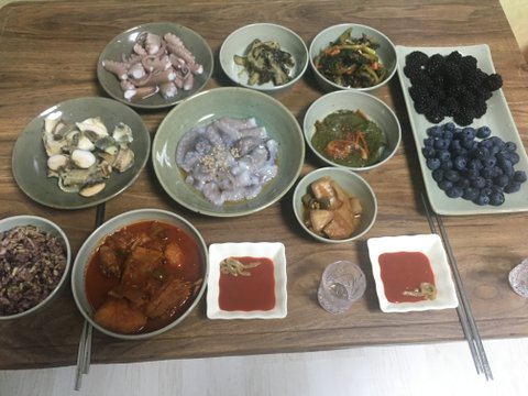 엄마가 낙지랑 소라 블루베리 들고 오셔서 거의 횟집