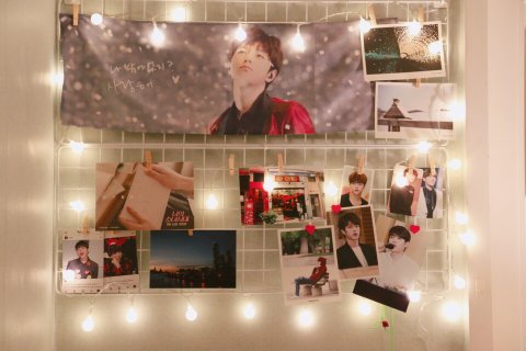 명수 슬로건 예쁘지ㅠㅠㅠ 고이 접어서 지퍼백 안에 넣어놨는데 쳐박아놓기 아까워서 인스타에서 네트망 인테리어보고 전구 달아봐땅>_<