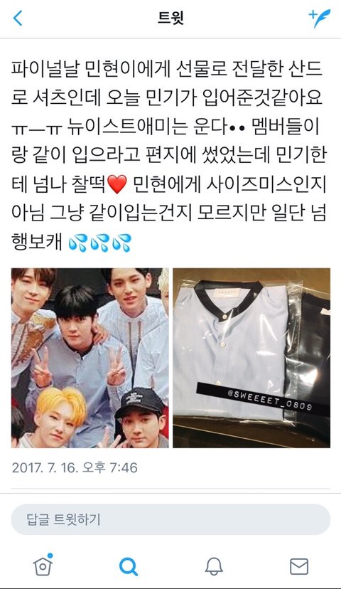 민기 오늘 착장 민현이 서폿ㅠㅠ