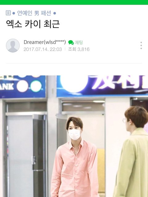 카이 셔츠 유행을 이끌어낸 남자 패션 카페라구 하는데 반응봐 정말 종인이는 남녀노소 구분없이 멋있구나 ♥️