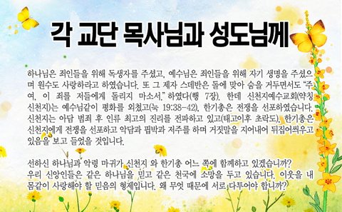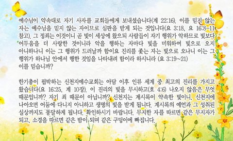 오늘 장로교, 감리교 성도님께 신천지 사랑의 편지로 인사를 드릴까 합니다.