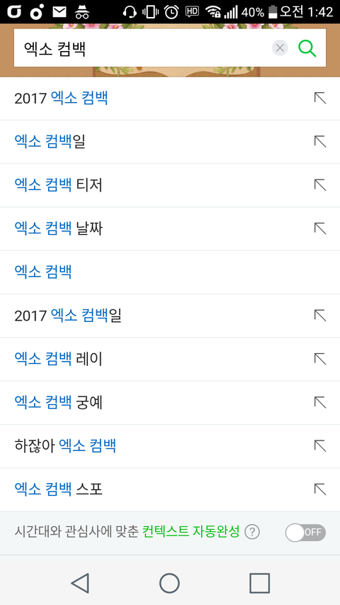 엑소컴백 자동완성검색어 마음에든다 ㅋㅋㅋ