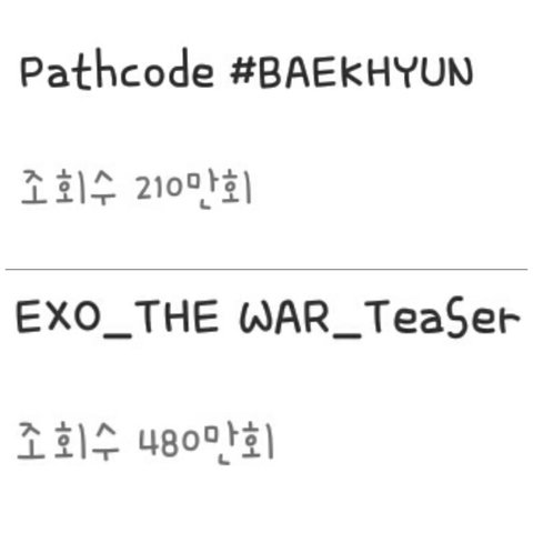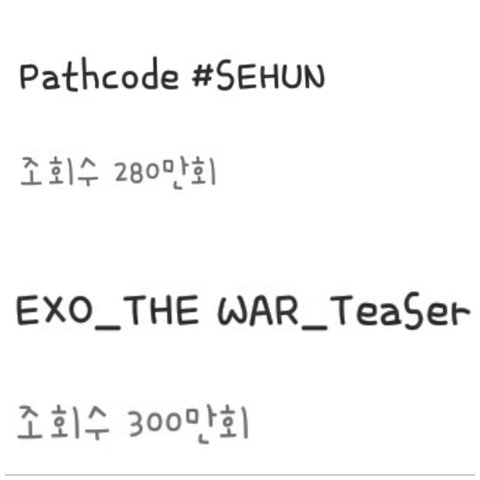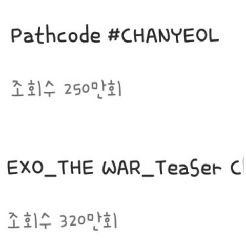 엑소 패스코드 티저도 그냥 넘어버리는 코코밥 엑소 티저 떡밥이나 궁예는>> 패스코드 넘사벽인데 조회수 그냥 발렸네 아직 조회수 못넘은건 나온지 얼마안되서 그렇다지만 내일만 되면 이제 또 훌쩍 넘을듯 걍 이번 안엑컴 엑소팬들 이악물고 달려드는듯 이번 앨범 초초대박일거야 (사실 vr도 듣고옴 진짜 옆에 엑소가 귓속말 해주는줄,,)