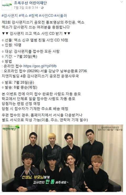 짧게 감사편지 쓰면 추첨으로 사인CD 10장 준데! 끝나기 전에 얼른 참가해]