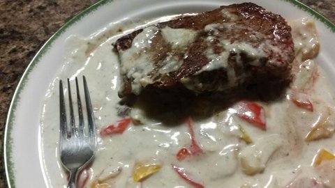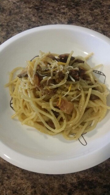 미디움 웰던으로 굽고 까르보나라 비슷하게 크림소스 만들어서 같이 먹었어요!!