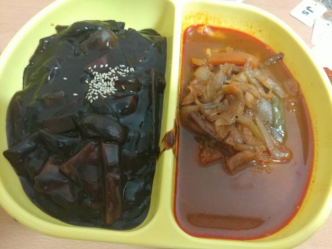 모양 잡아서 짜장 소스를 뿌리니까 저런 비쥬얼이 나왔네요..하하