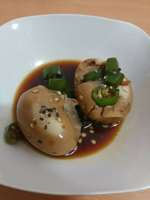 이것은! 반숙 장조림!청양 고추 넣고 같이 졸여서 매콤한 간장에