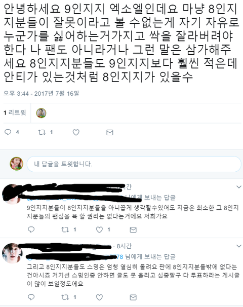 8지지욕하는글에 달린 멘션임 조카 뿌듯하네 ㅠㅠㅠㅠ ㅅㅁㅇㅈ 열심히 하자