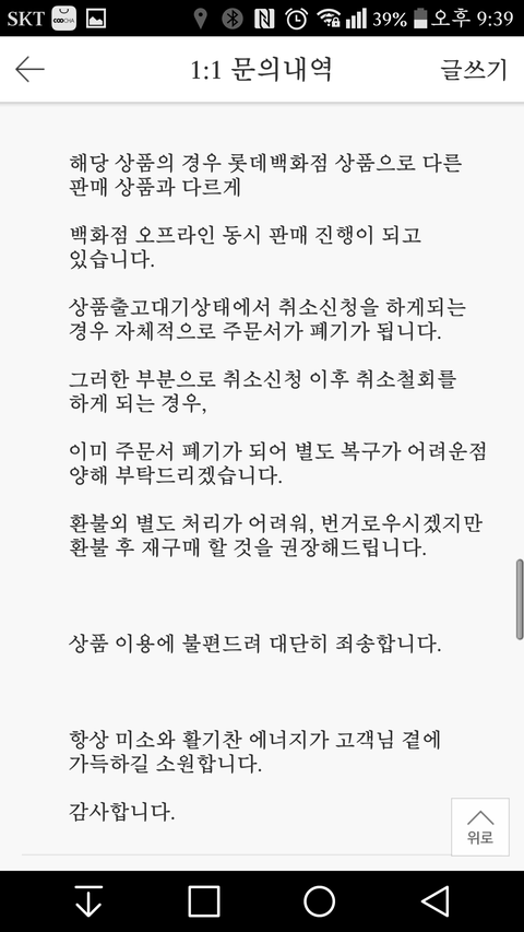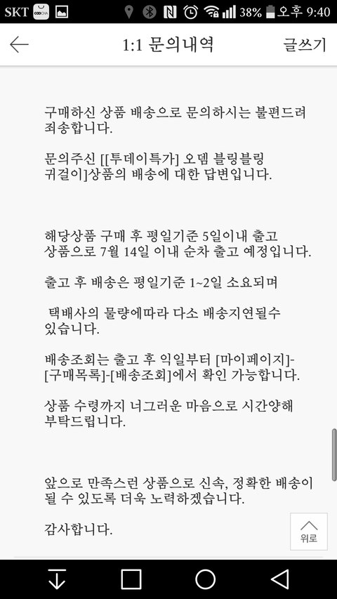 짜증나서 취소철회라는 기능을 이용했구요 그 후로 너무 기다리게 만드니까 언제 주문한 상품 오냐고 물어보니까