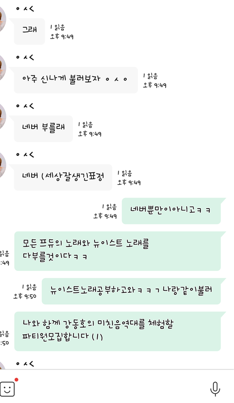 ㅋㅋㅋㄱㅋ 이번 주말에 노래방 가자고 약속잡는 중이었는데