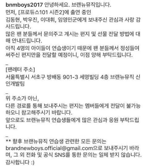 방토들 브랜뉴에 팬레터 보낼 때 아직도 요 아래 사진 속 주소로 보내는거 맞아?