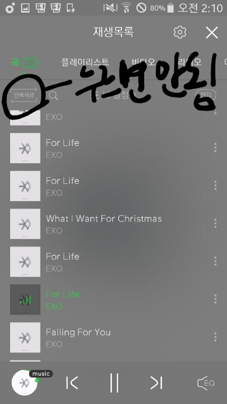 재생목록에 mp3 or dcf(맞나?) 이걸로 뜨면 안됨 이럴 경우 재생목록 삭제후 다시 재생목록 만들기