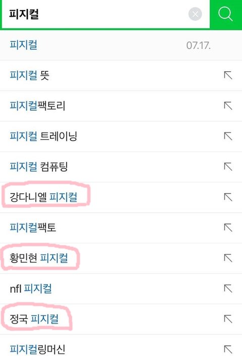 이케 초록창에 피지컬 검색하면 자동으로 완성되는 아이돌 3인임