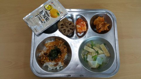 그리고 위에 댓글다신 분 영양교사 분이신지는 잘 모르겠는데 조리종사원분들이 밥하고 국 만 하고 생선도 굽는게 귀찮아서 다 튀기신다는 식으로 말씀하시던데 저희 학교도 조리종사원분 한 분이신데 사진에 있는 메밀전병 수제로 다 만든것입니다.