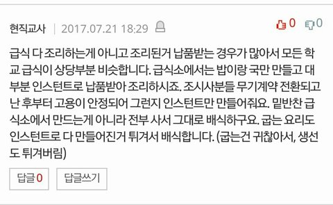 더운 날씨에 땀 흘려 힘들게 일하시는 조리종사원님들도 계신데 모든 학교를 그렇게 몰아가지 말아주세요ㅠ