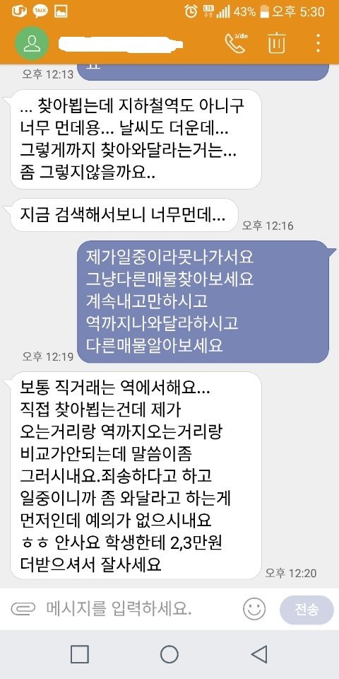 일부개념없는 중고거래 학생 방금겪은일..