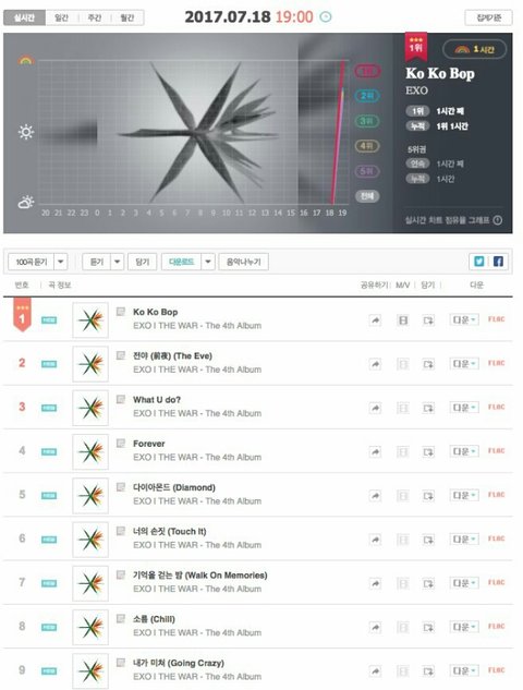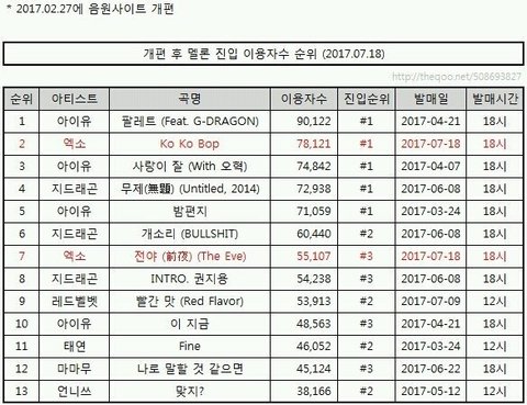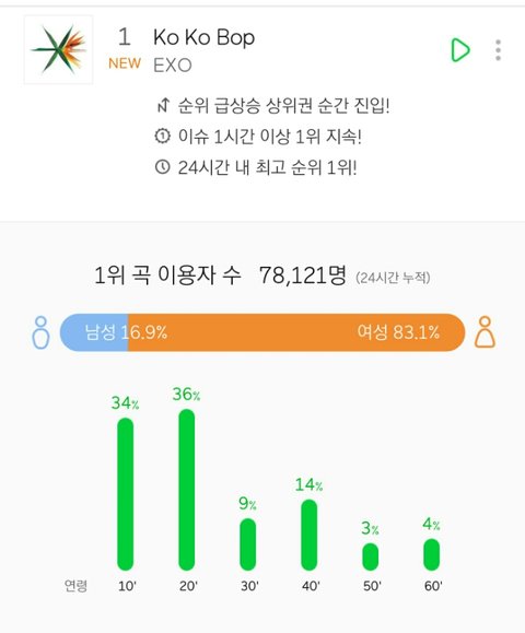 음원차트 개편 이후 아이돌 그룹 최초 멜론 진입 1위