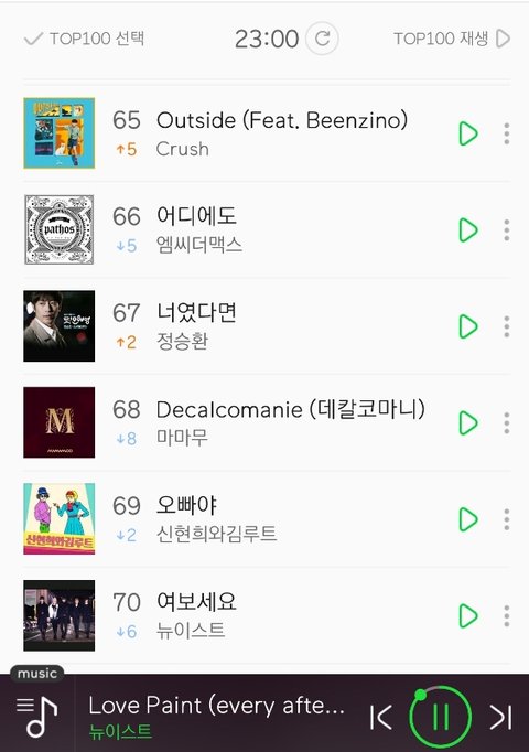 이 순위보고 충격먹어서 글쓴다 오늘 잘못하면 차트아웃이야 흐규흐규