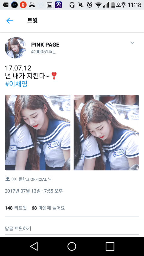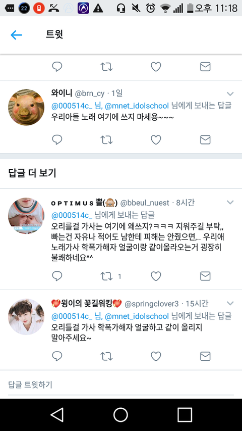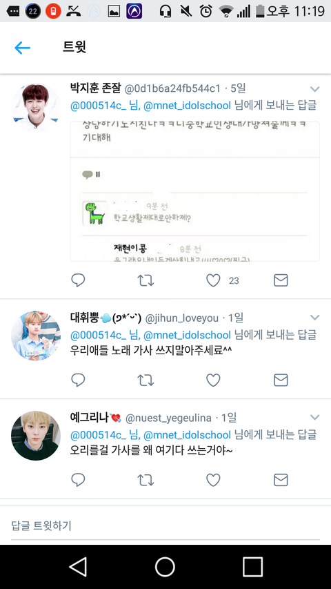 아이돌학교 이채영 홈마인데 아무리 싫어도 테러는 좀 아닌듯..ㅋㅋ 트위터 하는 사람들 부정적으로 생각하려는거랑 꼬투리 잡을려고 하는 거 이해 안감...
