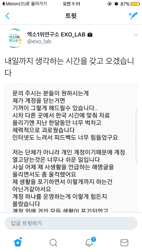 계정 닫지 말라해라 ㅠㅠㅠㅠㅠ진짜 연굳오 없르면 안돼 ㄹㅇ 허브홈급ㅇㄴ데
