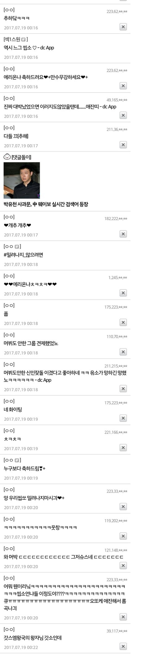 저 프듀갤에 워너원이나 프듀연생들 팬들 없음. 지금 정신 이상한 어그로들이 다 먹어서 원래 저기 있던 프듀연생들 팬들도 워너원갤팬들도 다 프듀갤은 피하고 있는 곳임. 저기서 이상한 말 나오는건 타가수 팬덤들이 믿고 걸러주길 부탁해. 진짜 저기는 손 못 댈정도로 답이 없어졌어.