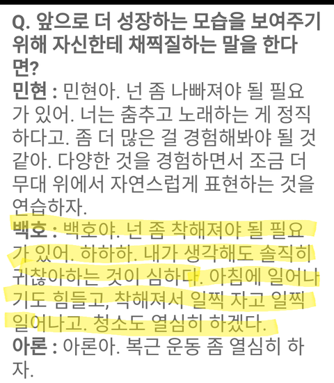 ㅎㅎㅎ맨날 민현이에게 먹금 당하더니 인터뷰에서도 역시나.....