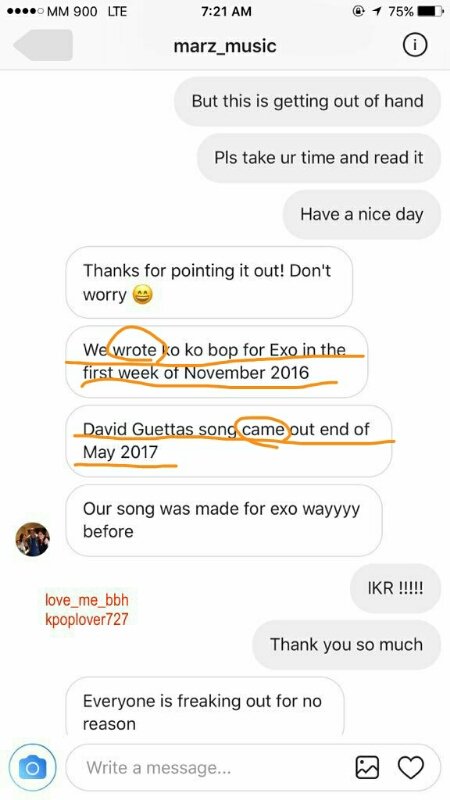 현재 'Ko Ko Bop' 작곡하신 분들 중 한분이신 MZMC님 피드백은 곡 2016년 11월에 다 쓰셨다고 하셨고 Light My Body Up은 2017년 5월에 나온 곡이니까 훨씬 먼저 썼다고 하셨어.