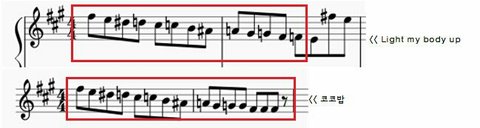 그리고 이건 Ko Ko Bop을 Light My Body Up키로 바꾼 악보