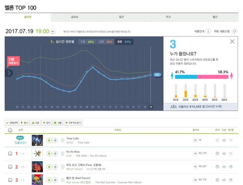 일단 엑소 24시간 누적 이용자 수 (어제 6시에 음원 냈으니 24시간 맞음)