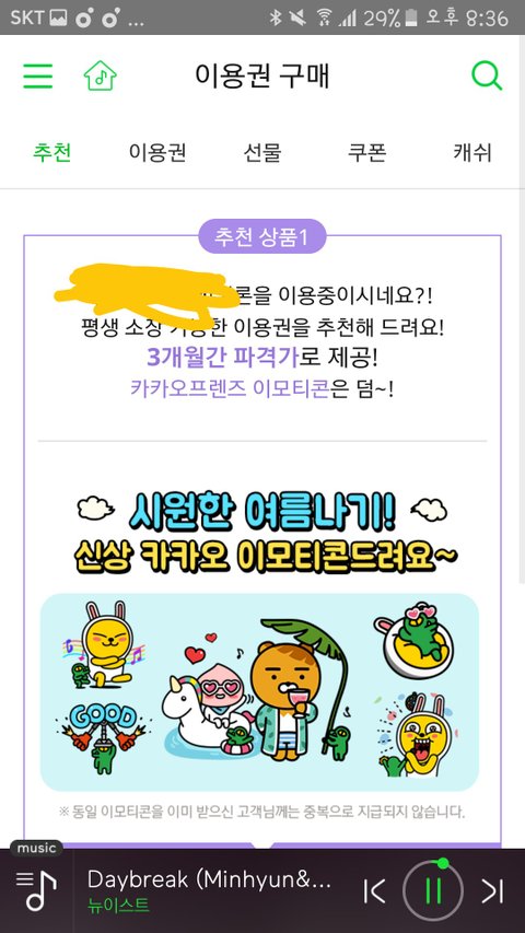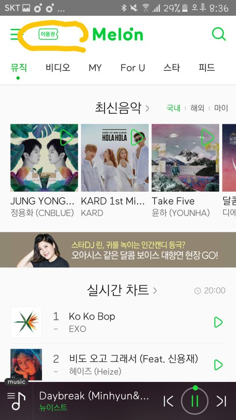 4. 멜론에 들어가서 이용권 버튼을 누른다